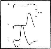 The recording electrodes are placed over the extensor digitorum brevis and the 5th metatarsal head and the peroneal nerve stimulated: (a) above the knee, (b) below the fibular head, and (c) at the ankle.