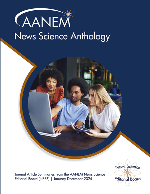 The AANEM News Science Editorial Board (NSEB) reviews more than 45 scholarly journals to find the most relevant and up-to-date science and provides journal article summaries on relevant topics of interest related to NM and EDX medicine to bring to AANEM members. Read the committee's News Science Anthology for all articles from January - December of the previous year.